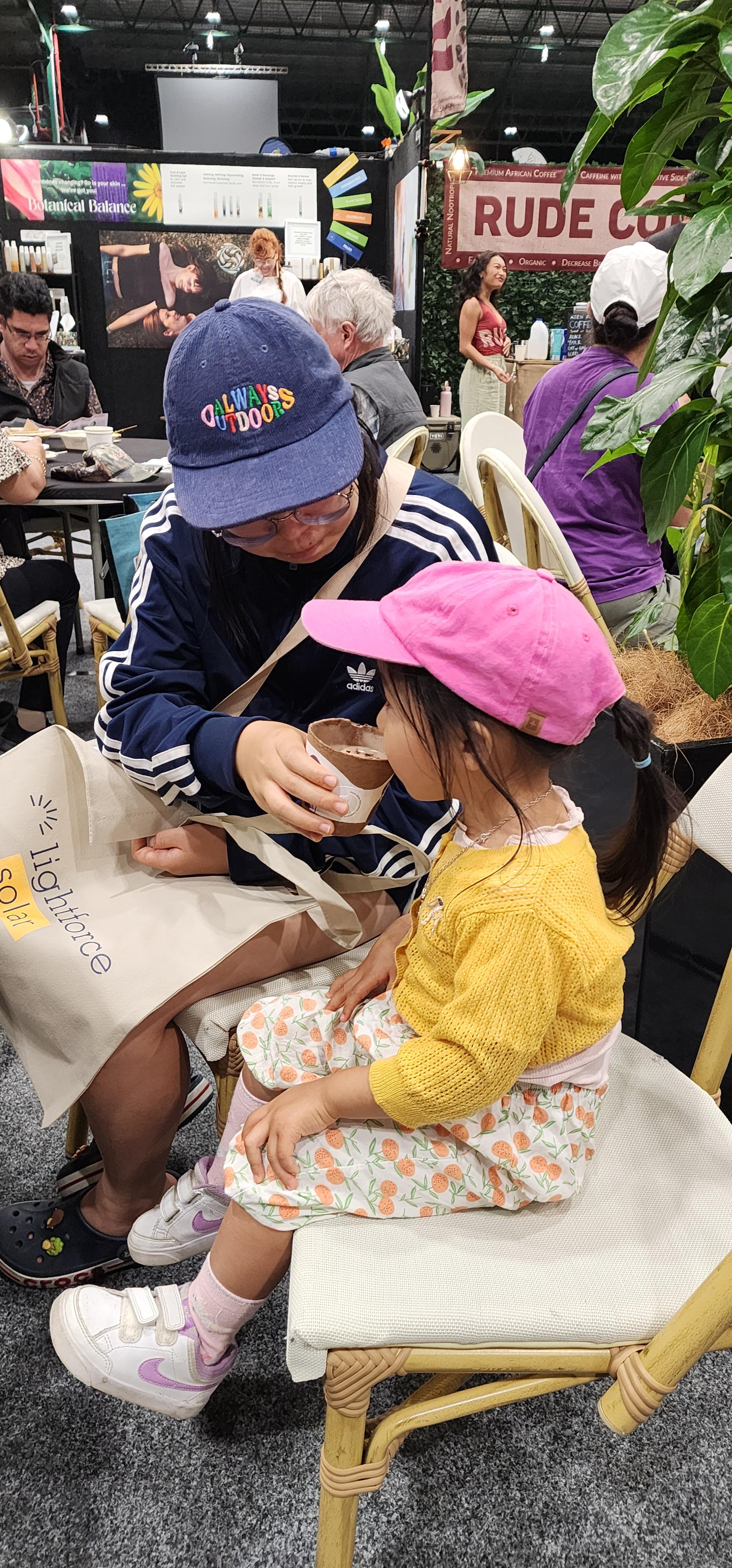 그레놀라 시식 코너에서 아이들이 맛있게 먹고 마음에 들어 해서 한 봉지를 구매했어요. 또 여러 부스에서는 천연 화장품을 발라보고, 친환경 비누를 체험해보는 등 재미있는 시간이 이어졌답니다.